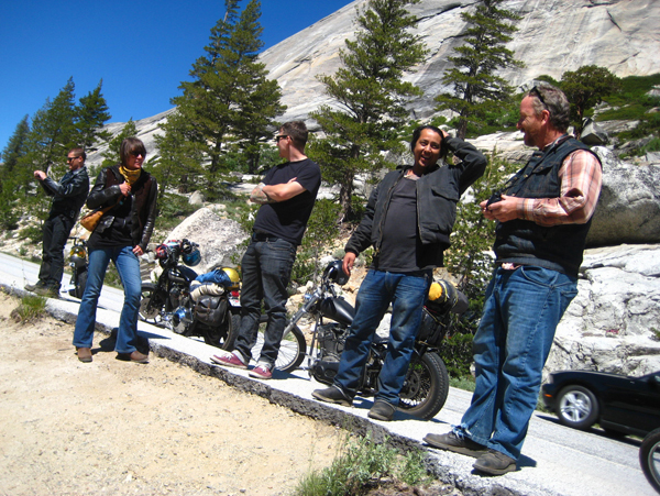 After enjoying a Kodak moment in Yosemite National Park on day two, our band of outlaws beat the heat with a brisk dip in the lake. Mike D shoots the Sex Panther while Billdozer and CB Eric ponder the majesty of it all.